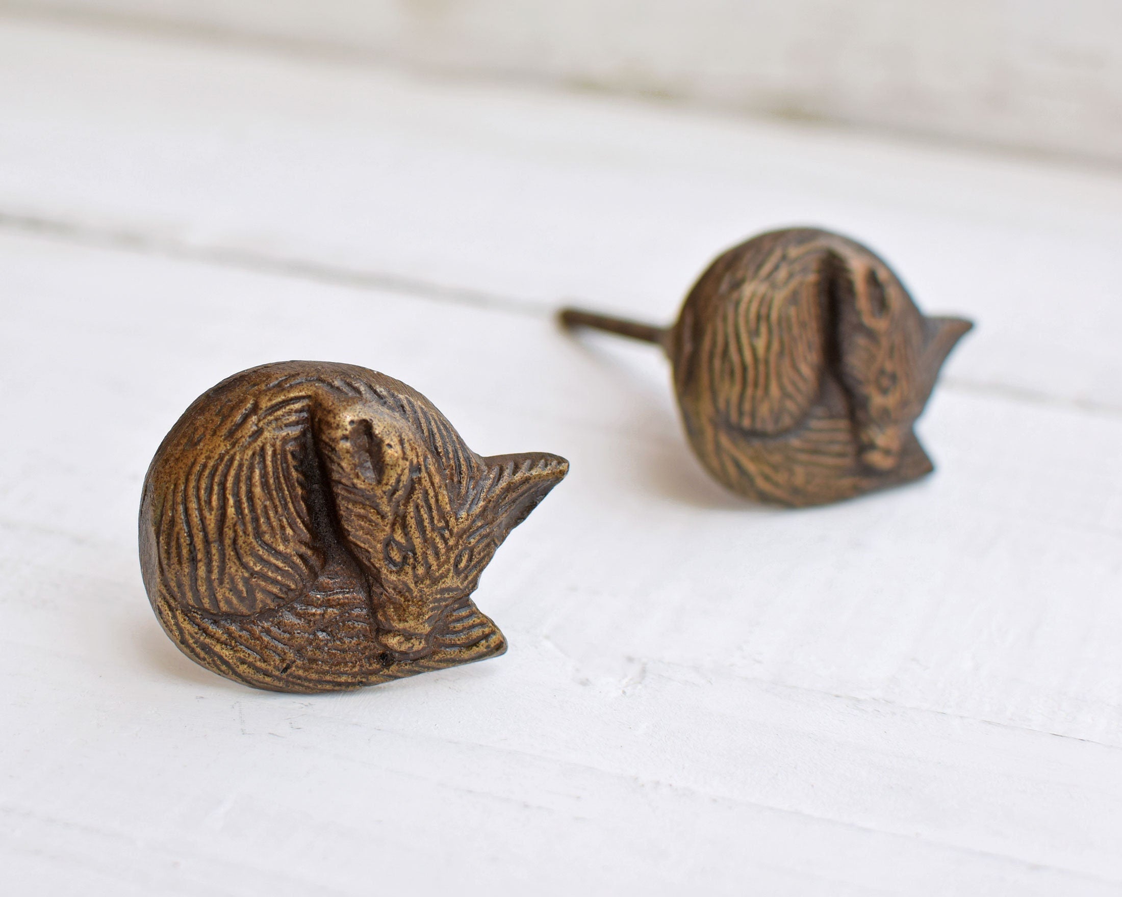 Sleeping Fox Antique Brass Cabinet Drawer Knob Pull Animal Kitchen Cabinet Knobs Woodland Dresser Drawer Pulls Brook And Birch